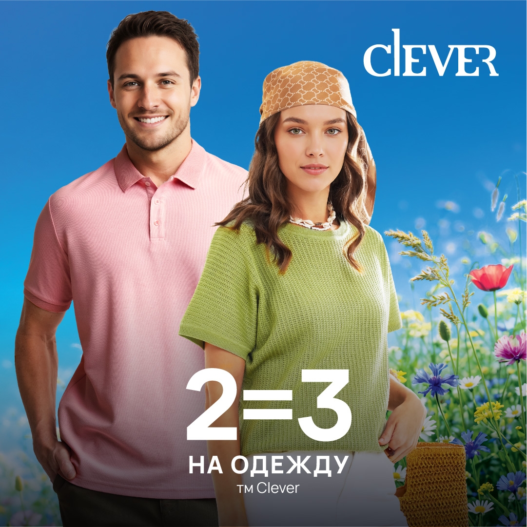 В магазине CLEVER акция 1+1=3 на женскую или мужскую одежду