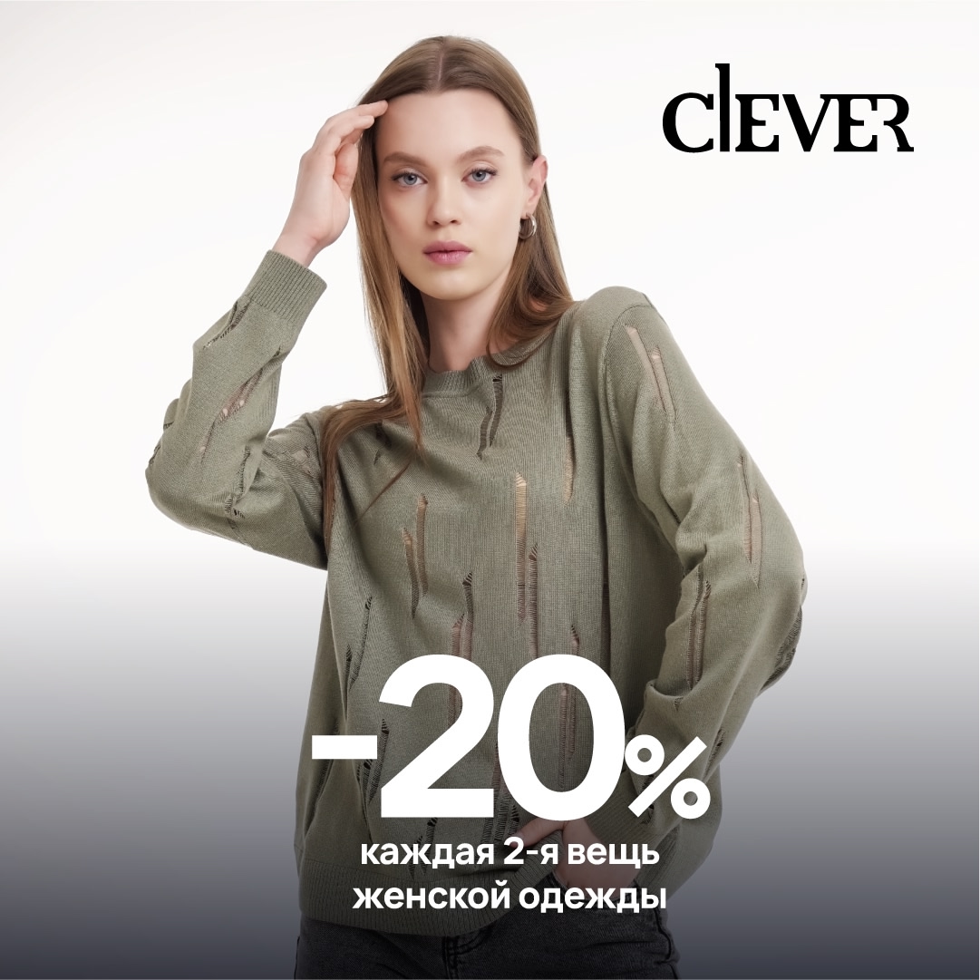 В магазине CLEVER скидка 20% на каждую вторую вещь